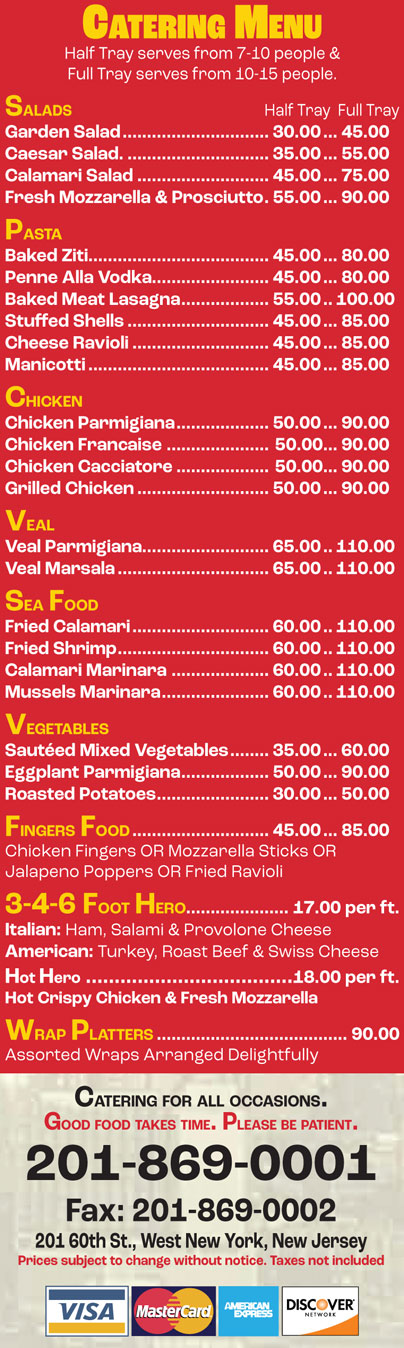 Catering Menu Page 1 of 1